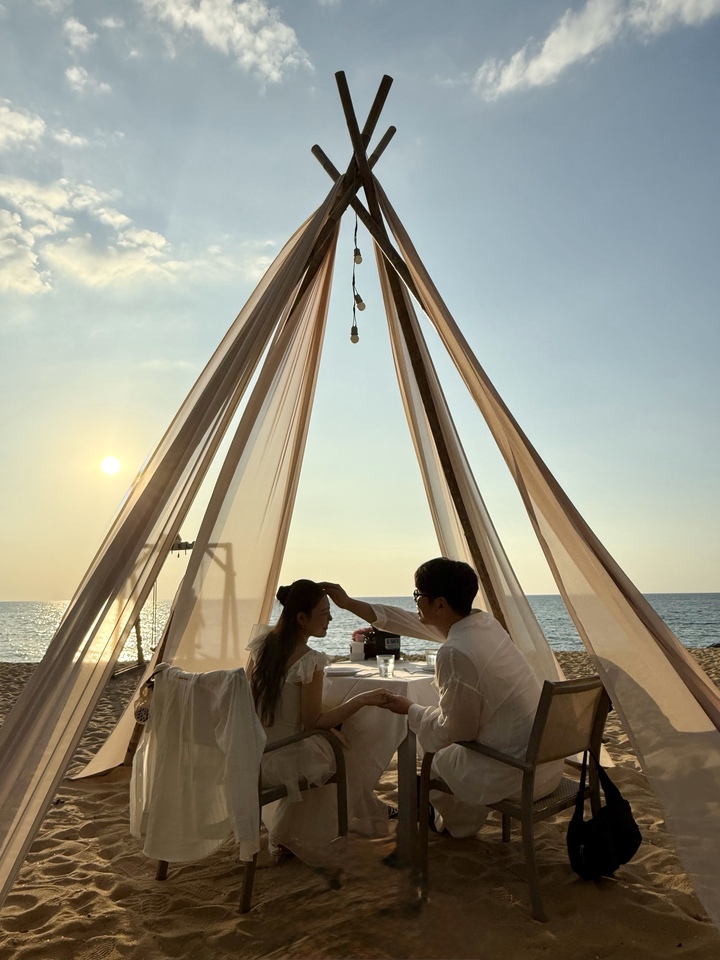 카오락은 아직 많이 알려지지않아 조용하고 여유로움이 너무 좋았어요 완전 휴양 그자체 여러 투어들도 다 너무 좋았지만 특히 로맨틱 디너 너무 추천입니다 모든 신혼부부라면 안좋아할수없을거같아요 분위기가 진짜 미쳤어요 랍스타에 와인 마시면서 보는 풍경이 말로 설명할수없어요 그리고 매니저님들 사진 고수님들이에요 인생샷남기기 쌉가능..!! 의상 꼭 맞춰 입고가세영