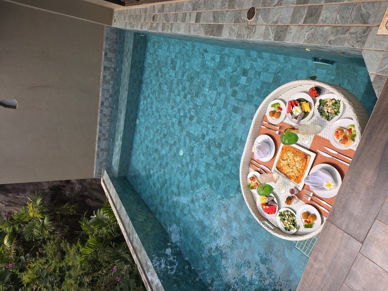 넷째날엔 좋은 숙소에 온 만큼 리조트의 모든 시설을 즐길 수 있는 자유시간이어서 리조트에서 조식 먹고 메인풀에서 신나게 놀고 개인풀에서 너무 이쁜 플로팅 런치도 먹었습니다.